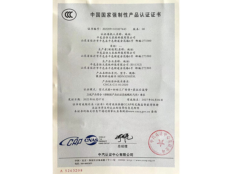 平邑恒大農牧科技有限公司,是中國北方地區較早生產散裝飼料運輸罐車的企業,專業致力于設計、研發和生產散裝飼料運輸車、散裝飼料罐、畜禽運輸車的企業。
